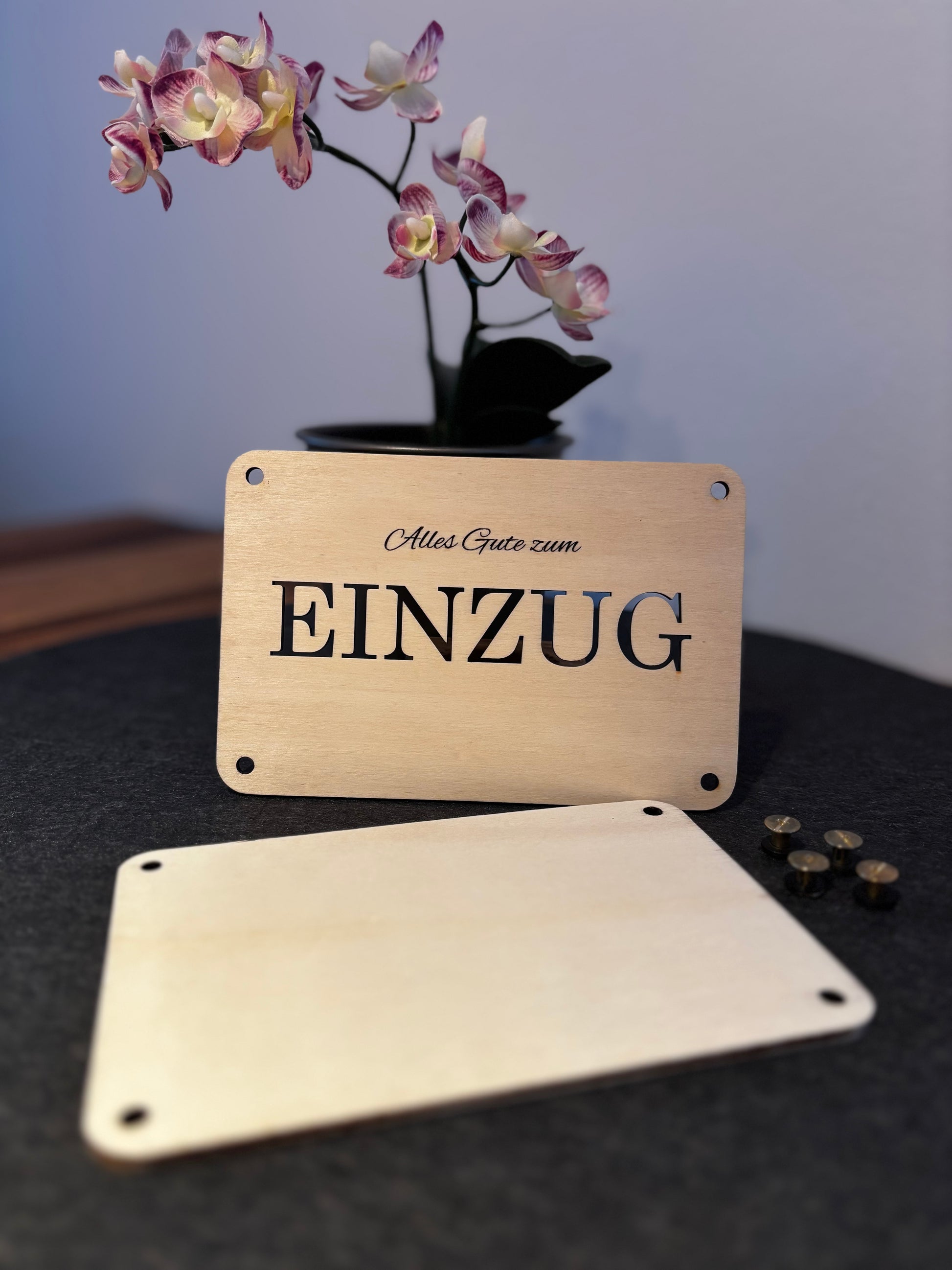 – Lasergravur: „Alles Gute zum Einzug“